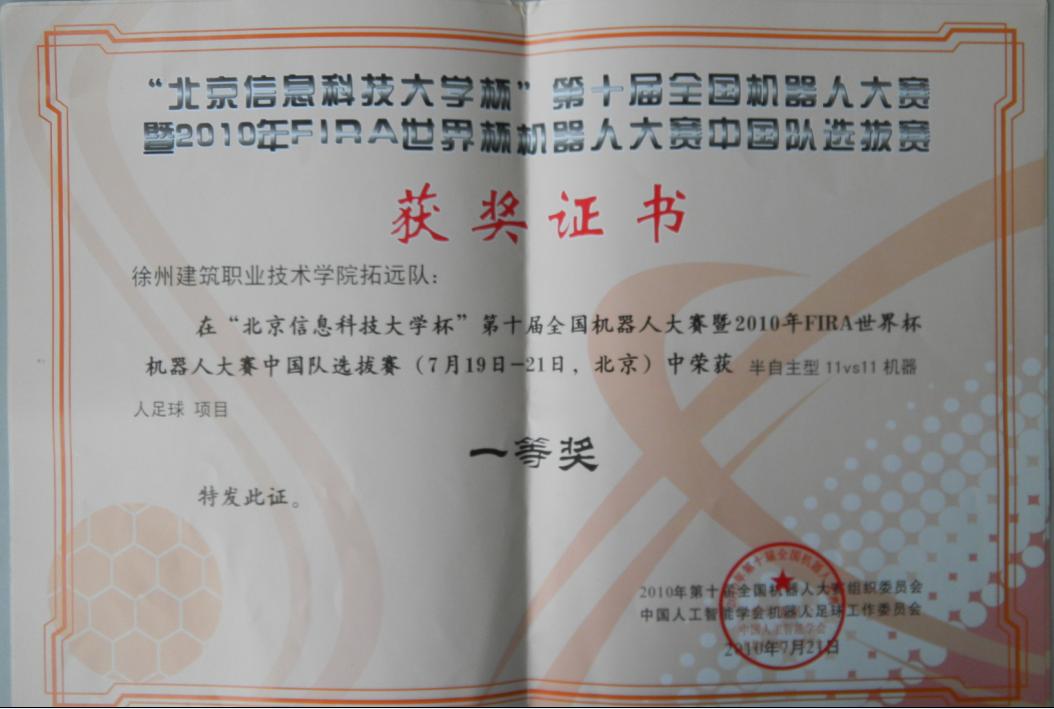 2009、2010年获机器人大赛全国一、二、三等奖