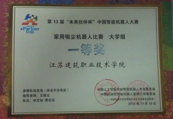 2012年12月第13届中国智能机器人大赛获一等奖