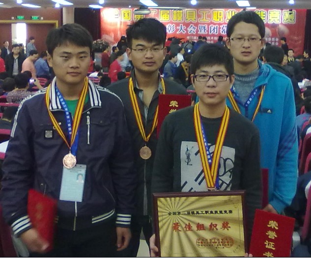 2012年12月全国第二届模具工职业技能大赛获最佳组织奖,员工宋宜超、渠留洋荣获铜牌