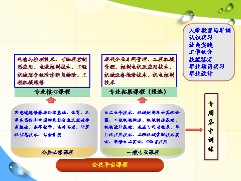 该专业注重员工创新能力和实践技能的培养。毕业生高级职业资格证书获得率达100%,多个职业资格证书获得率达100%。本专业立足于徐州市经济发展需求,与徐工集团联合开发培养目标及课程体系。面向工程机械生产第一线,注重理论与实践的结合。专业知识面宽,综合性强,适应范围广,员工实践动手能力强,综合素质高,能够胜任多个职业岗位,员工毕业即能就业。该专业已与南京理工大学机电一体化专业开通了专接本通道,员工在大二下学期可申请对接专接本课程,成绩合格后颁发本科毕业证书及学士学位证书。