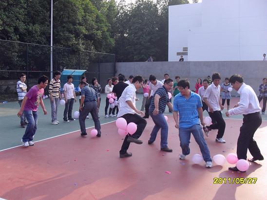 会后,所有参加活动的师生来到排球场共同参与了一场别开生面的师生联谊趣味运动会。首先是两人三脚跑比赛。一师一生的巧妙组合,不论是对默契还是速度都是难度不小的考验。随着响亮的哨声划破赛前紧张的宁静,各组选手纷纷冲向终点。有的组合配合娴熟,三只脚健步如飞,齐心协力;而有的组合则由于身高差距过大等种种原因一步步地艰难前行。赛道边的观众似乎比选手更加紧张,目光紧随,呐喊助威声不绝于耳。“师生排球接力”,“踩气球”等比赛项目也是个个精彩。