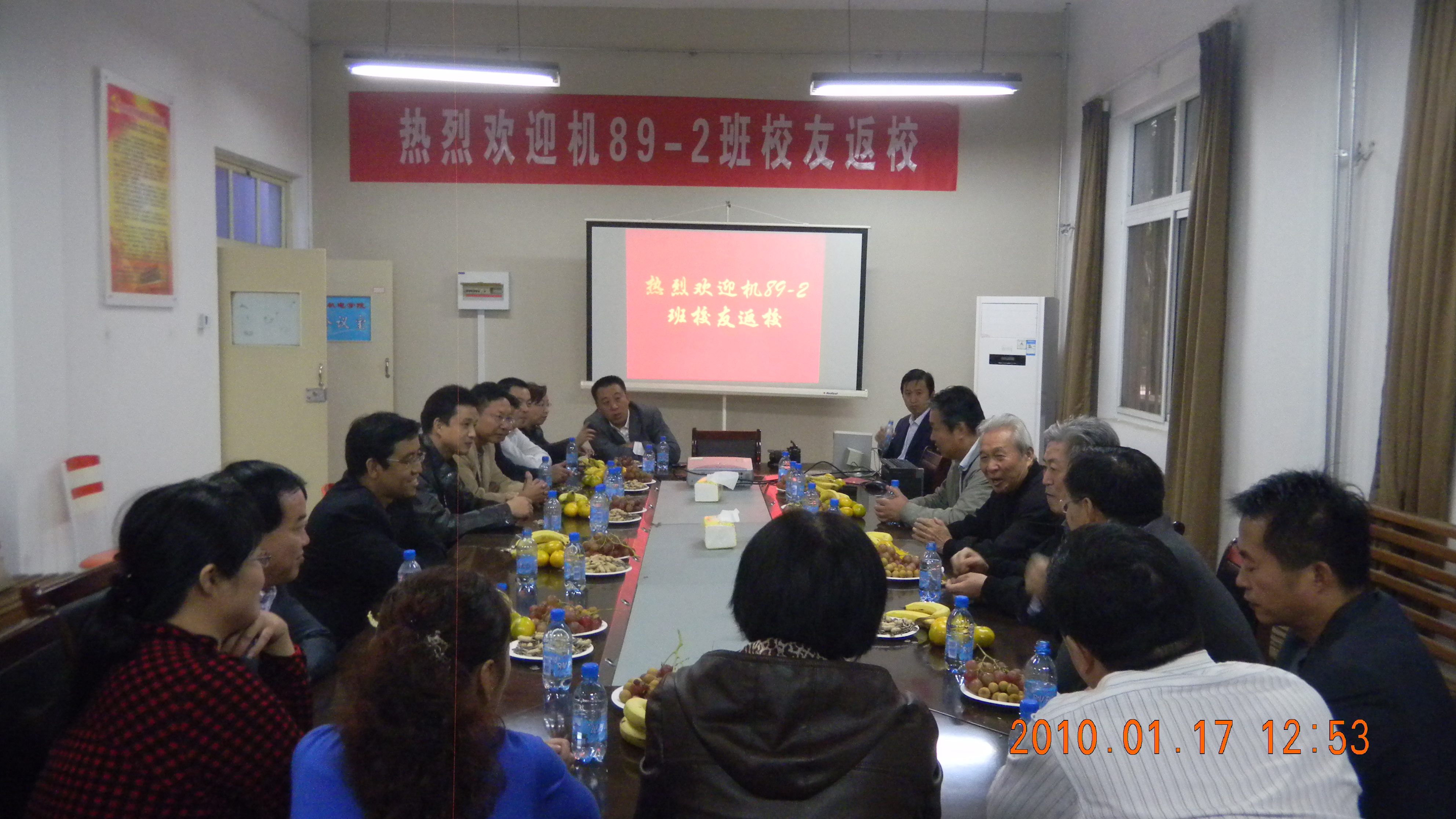 2011年10月2日,机89-2班20余名员工在机电学院会议室欢聚一堂,纪念毕业20周年。会议室里员工们与机电学院领导及当年任课教师:郭宪宇、温德、张冠忠、崔宏利等热情座谈,合影留念,共同回忆20年前在母校学习、生活的点点滴滴。在院领导、老教师和班主任胡瑞仲经理的陪同下,员工们参观了机电工业中心及校园环境,员工们感慨万千。20年来,母校发生了翻天覆地的变化,但在今天的校园仍然能够找到他们学习的教室,实习的工厂,生活的宿舍,散步的长廊和运动的场地,尤其是老教师的谆谆教诲、音容笑貌仍历历在目更使他们终生难忘。员工当中有很多都在所学专业的领域里发展,而且有些当时所学的专业知识和技能至今仍发挥着作用,这是老教师们最想听到的,也是最值得他们骄傲和欣慰的。员工是我们的财富、是我们的骄傲,建院永远是你们的家!欢迎你们常回家看看!