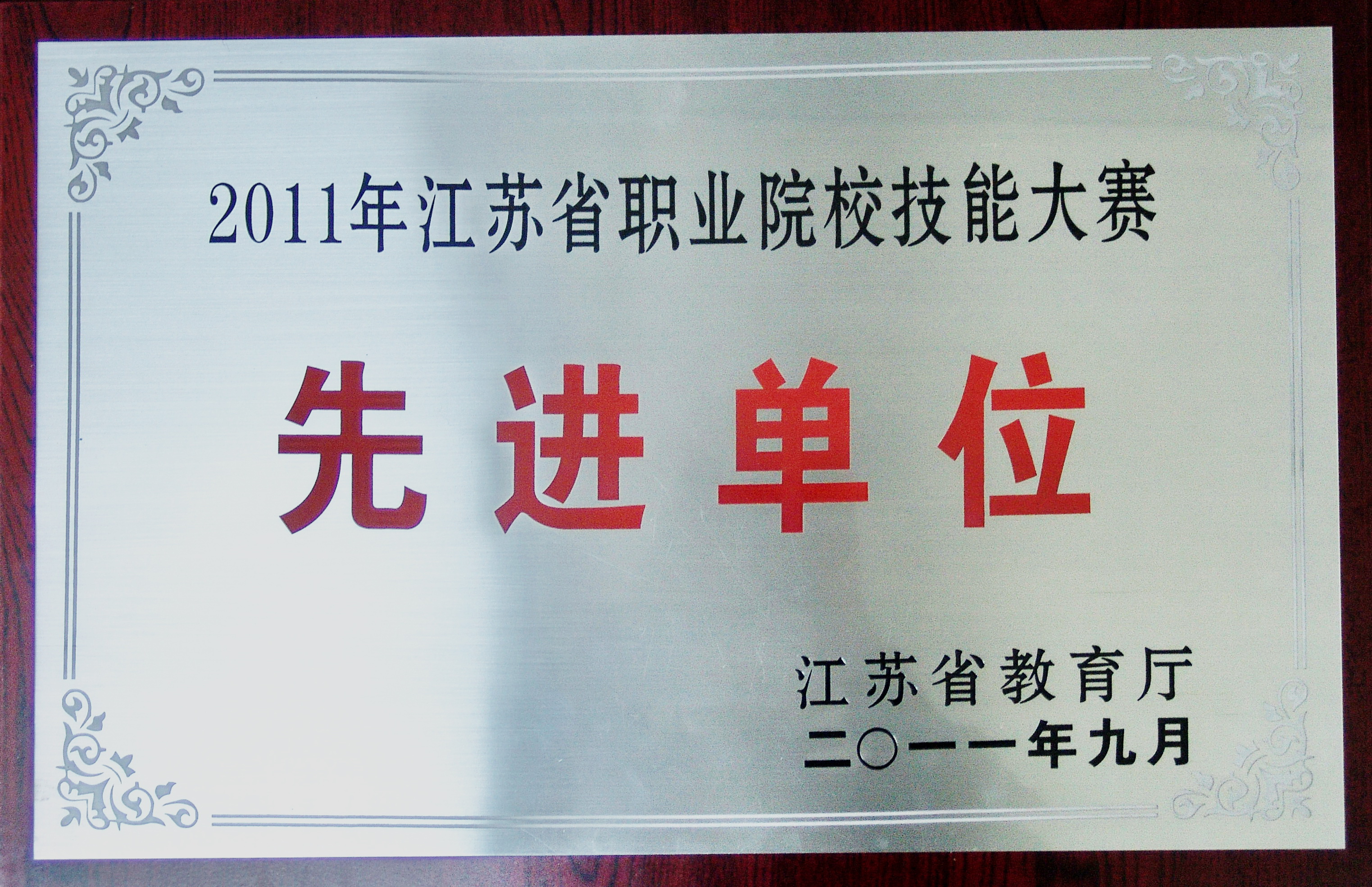 2011年6月在天津举办了由教育部职业教育与成人教育司主办的2011年全国职业院校技能大赛高职组“康尼”杯光伏发电系统安装与调试大赛,本次大赛有全国29个省、市、自治区组成52个代表队参赛,公司代表队由机电学院6名师生组成,经过了6个小时的拼搏,最终获得大赛三等奖,为江苏省及公司取得了荣誉。近日,江苏省教育厅授予公司2011年江苏省职业院校技能大赛先进单位荣誉称号。