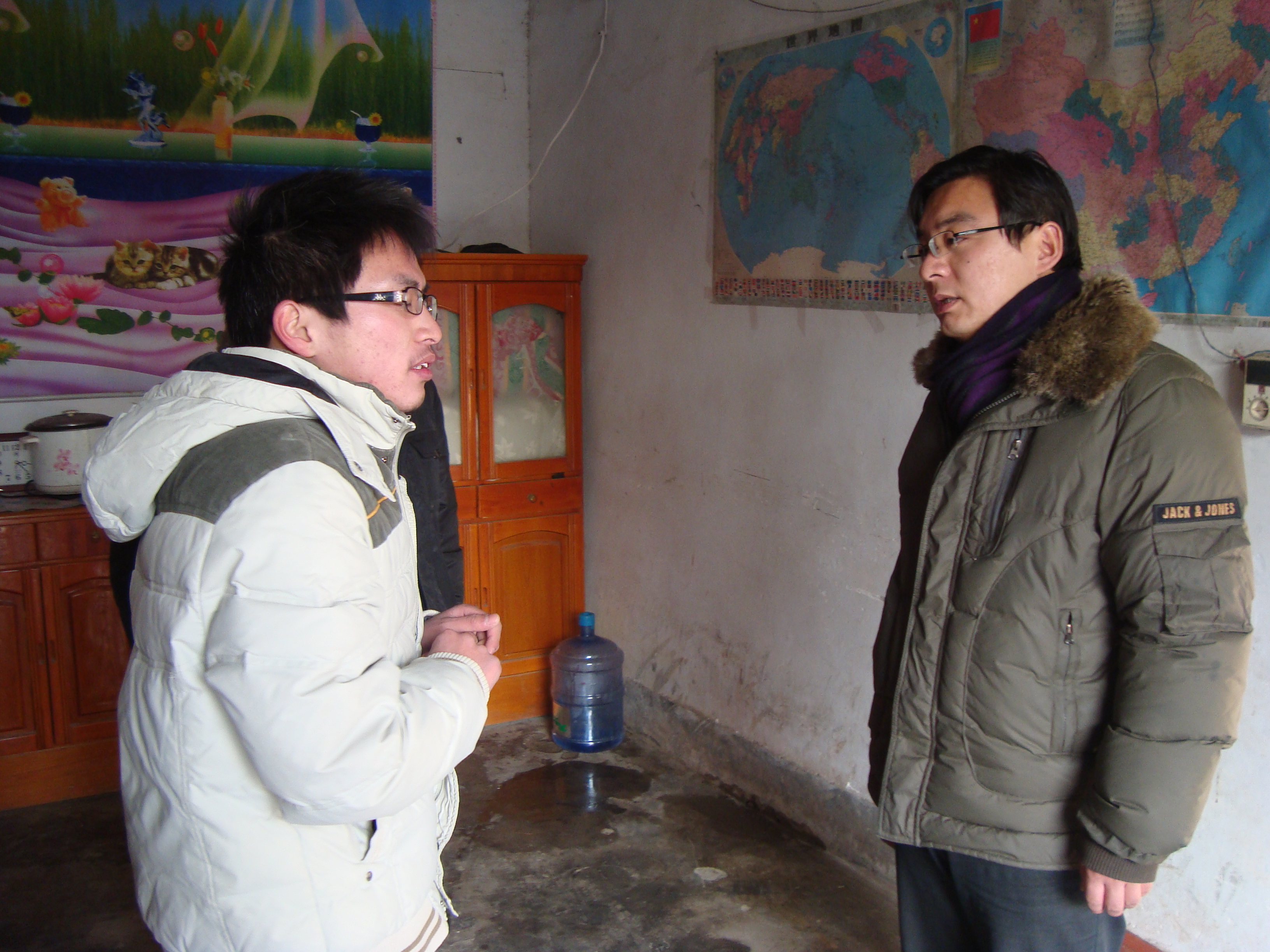 1月12日,带着深切关怀,机电公司党总支副书记朱铁壁带领部分专兼职辅导员专程赴连云港市灌云县向阳乡刘庄和小伊乡河西村,看望慰问机电学院贫困员工模具10-1班刘小明和数控11-1班徐明星同学,分别为他们送上祝福和节日慰问品。