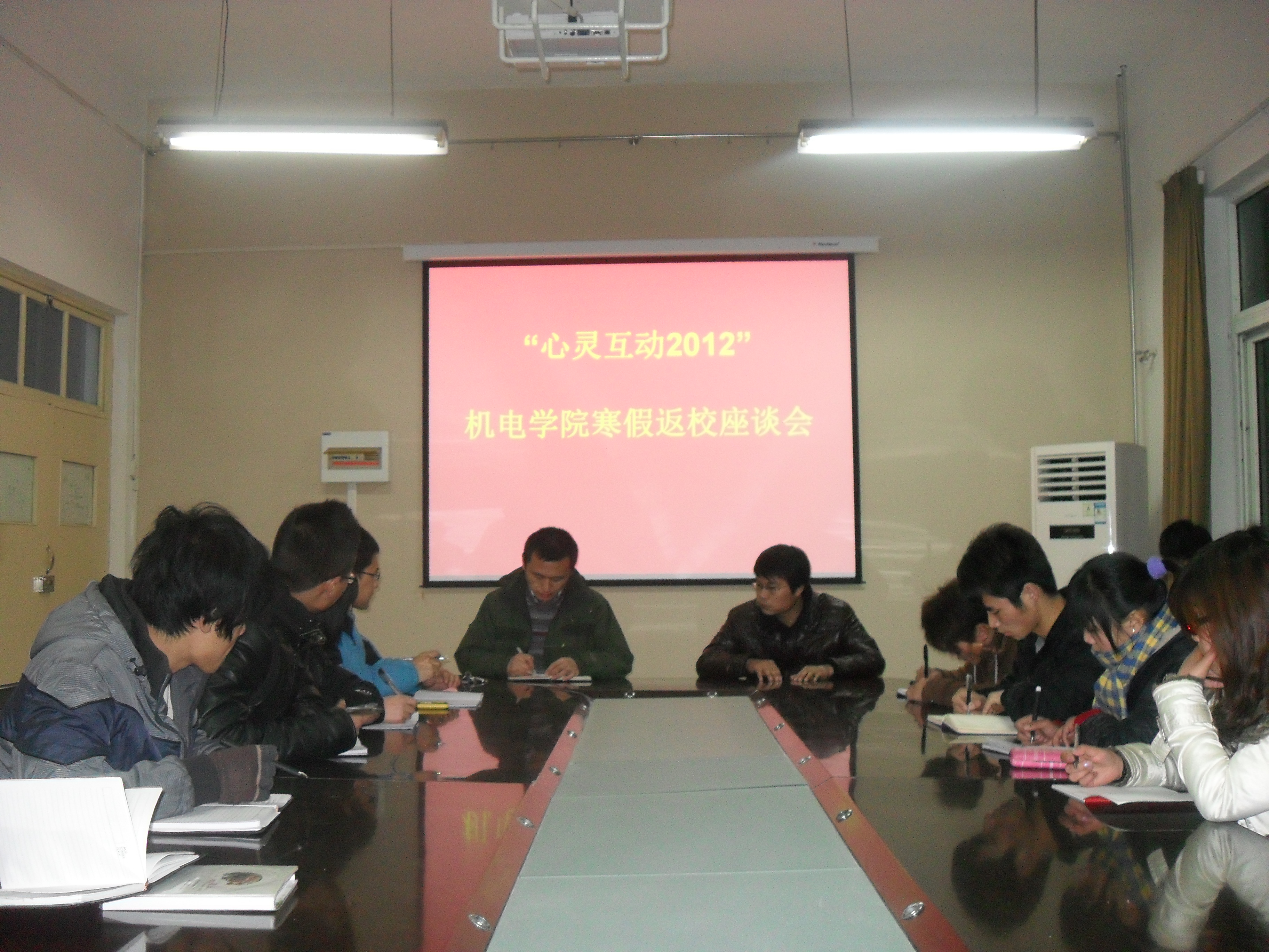 为切实做好返校员工思想状况调查工作,按照校团委的统一要求,机电学院于2月23日晚举行了“心灵互动2012”寒假返校员工思想状况座谈会。专职辅导员胡兵老师出席,学院10、11级员工代表40余人参加,会议由分团委书记吴文辉老师主持。