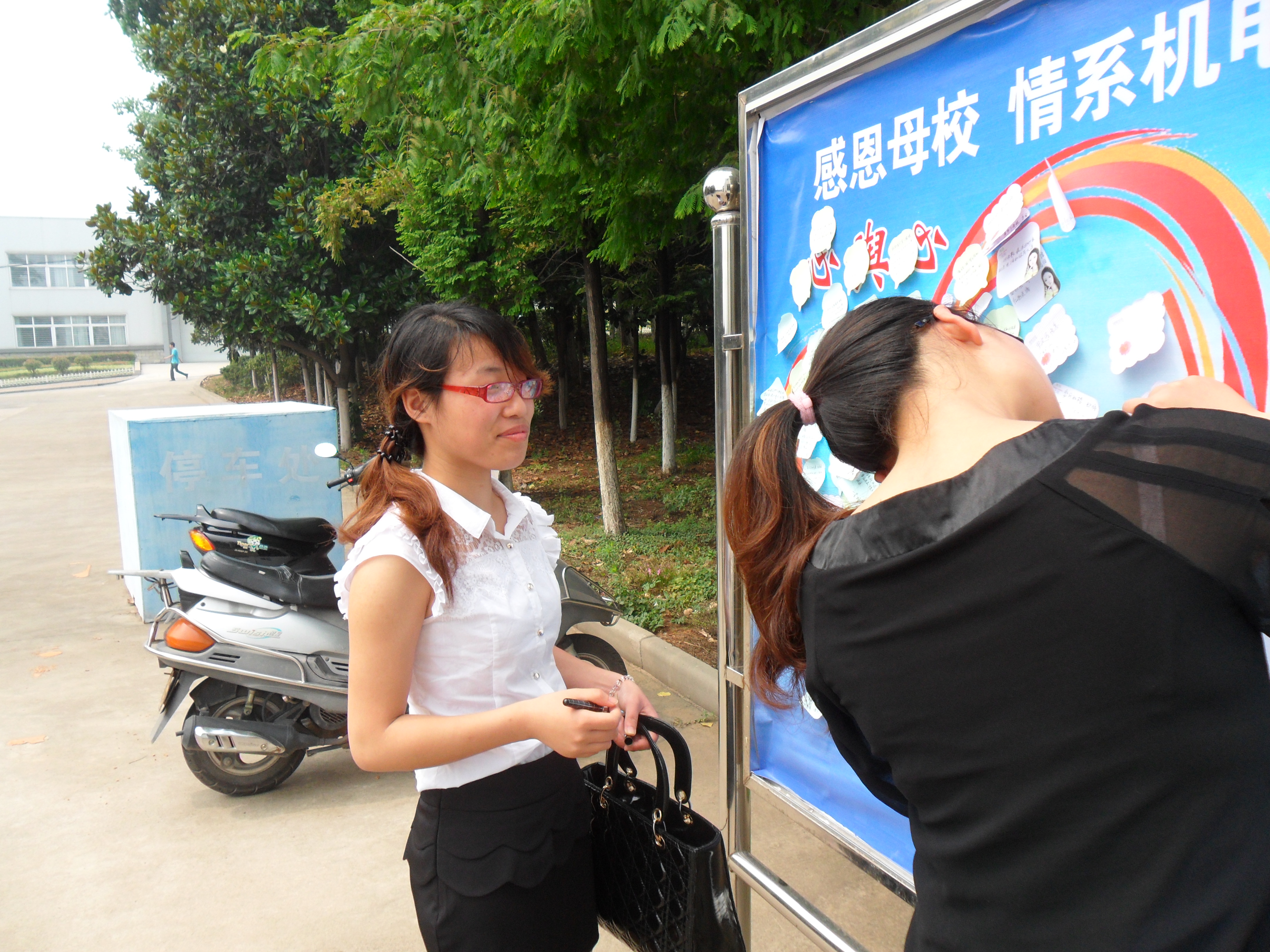 2012年6月8日,在毕业生返校之际,机电学院举办“感恩母校、情系机电”为母校送祝福活动。活动当天,毕业生在学院领取信笺纸,在纸上写上最想对老师说的话,然后将其贴在机电学院专为毕业生设立的祝福墙。同学们非常踊跃,埋藏在心里的话找到了倾诉的途径。正在忙着指导毕业设计的老师都好奇地走到祝福墙旁边,去看看毕业生为老师传达的祝福。