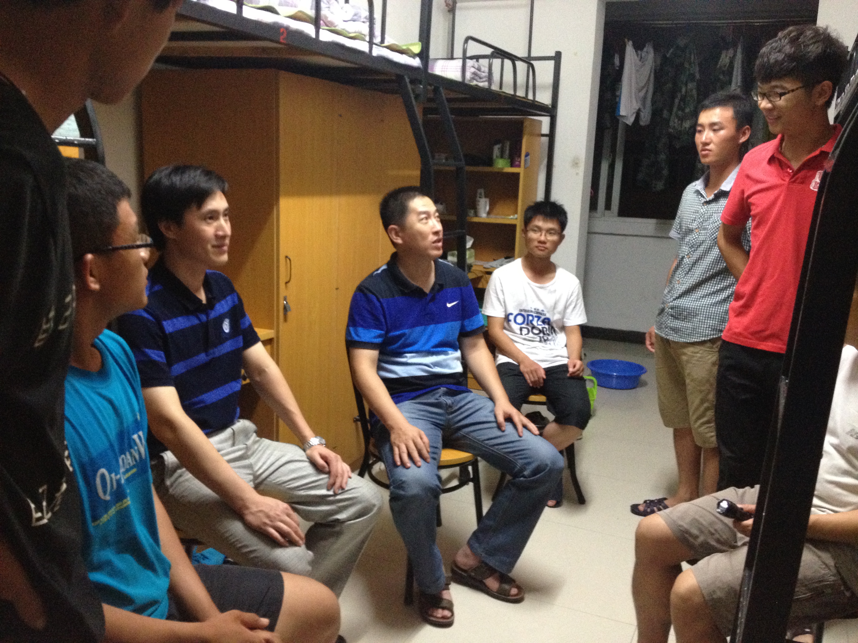 9月19日晚上,是一年一度的中秋佳节,也是公司新生军训的第六天。机电公司党总支书记潘峰、副书记鹿毅携部分专兼职辅导员一行深入员工宿舍楼走访看望学院2013级新同学,为他们送去学院的节日问候,并通过逐一走访加强学院与员工之间的沟通交流,及时了解员工们的需求。