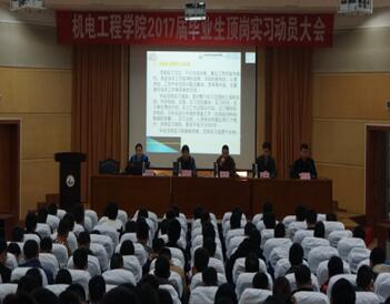 为确保公司2017届毕业生顶岗实习的顺利进行,2016年11月13日晚上,机电工程学院在学术报告厅隆重召开2017届毕业生顶岗实习动员大会。机电工程公司党总支书记潘峰、机电工程学院经理仇文宁、机电工程学院副经理李志球、党总支副书记鹿毅出席会议,参加大会的还有毕业班班主任、就业辅导员和全体2017届毕业生。大会由