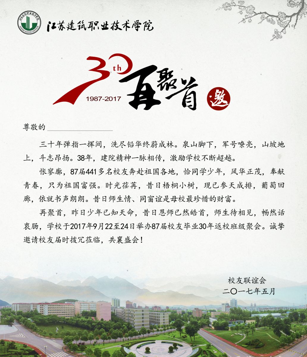 欢迎毕业30年员工返校聚会!2017毕业30年员工聚会邀请函