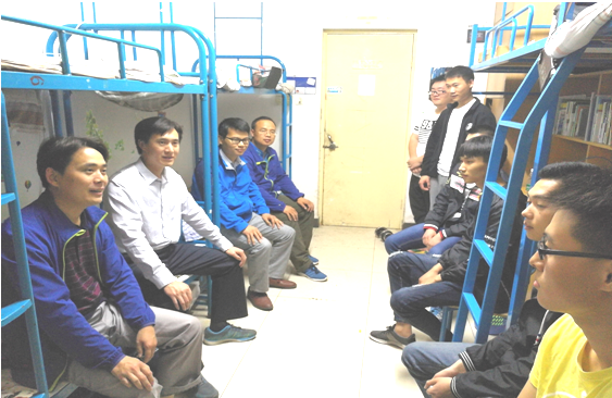 在2017届的毕业答辩临近尾声之际,为了做好毕业生离校工作,2017年6月6日晚,机电工程学院鹿毅副书记带领2017届全体毕业生班主任,走进员工公寓,看望毕业生们,与同学们促膝畅谈,关心询问他们的答辩情况,以及离校环节有何困难疑惑,学院将全程提供相应的帮助和服务,保证公司毕业生们顺利毕业、开心离校!