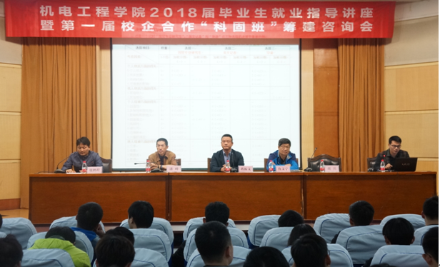 2017年10月23日下午4点30分,机电工程学院隆重召开2018届毕业生就业指导讲座,机电工程公司党总支潘峰书记、机电工程学院仇文宁经理、苏州科固电器有限公司总经理蒋振文先生、17届员工程志鹏及部分毕业班主任出席了会议,机电学院2018届全体毕业生参加了会议,此次会议由鹿鹏程老师主持。