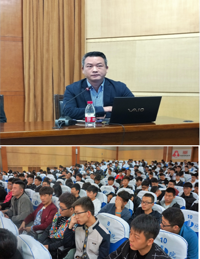 2017年10月23日下午5点,机电工程学院隆重邀请杰出企业代表苏州科固电器有限公司总经理蒋振文先生为公司2018届毕业生作就业形势分析报告,机电工程公司党总支潘峰书记、机电工程学院仇文宁经理、17届员工程志鹏及部分毕业班主任出席了会议,机电学院2018届全体毕业生参加了会议。