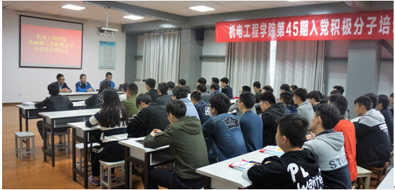 2017年10月25日下午4:30,机电工程学院第45期党校培训开班仪式在机电工业中心202举行。机电公司党总支书记、分党校董事长潘峰同志、教工支部委员黄培老师出席仪式,参加此次开班仪式的还有机电学院辅导员和分党校全体学员。