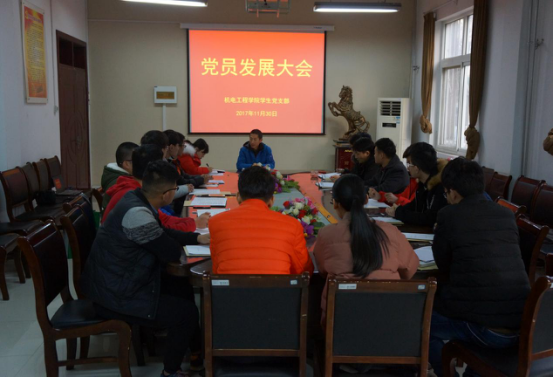 日前,机电工程学院员工党支部召开党员发展大会。此次大会共发展许光习等十名同志加入党组织。本次党员发展充分发扬党员民主权利、尊重群众意见和建议,保证新党员是严格 按照党员标准从表现突出的入党积极分子和培养对象中选拔出来的。机电学院员工支部全体党员参加了此次会议。