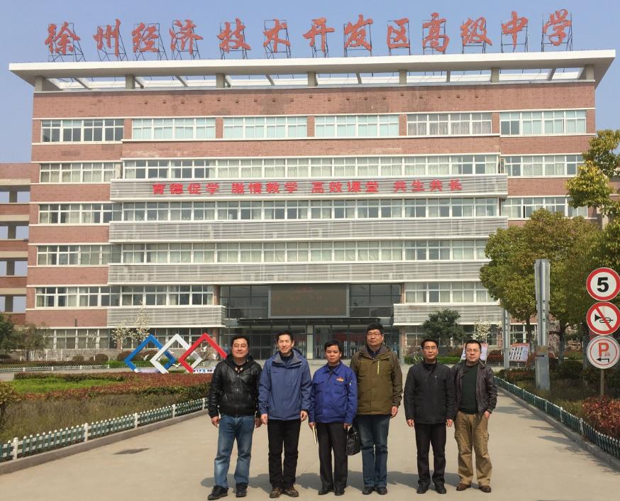 3月23日上午,机电工程学院仇文宁经理、潘峰书记、招生办公室周永臣主任与徐工集团环境有限公司吴继光书记一同驱车前往徐州经济开发区高级中学,开展2018年单独招生考试结果回访工作,同时与该公司党政领导洽谈2019年生源地共建等合作事宜。