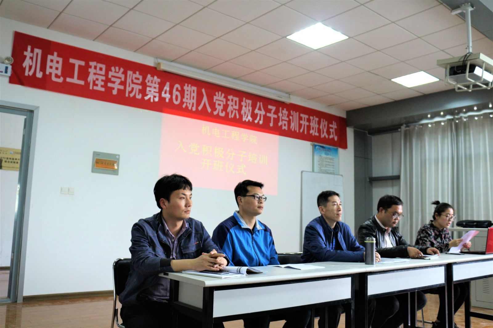 2018年4月2日下午,机电工程学院第46期党校培训班开班仪式在机电工业中心举行。公司党总支书记、分党校董事长潘峰老师作专题讲座,党总支副书记李珂老师、培训班导师胡兵老师、鹿鹏程老师、郭利老师出席开班仪式。培训班采取了专题讲座、自学讨论、观看视频、实践活动等多种授课形式,共有51名同学参加。