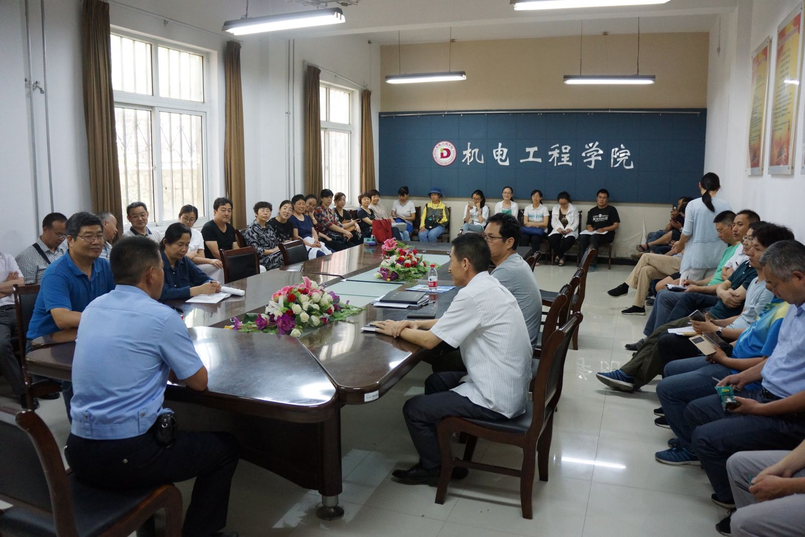 2018年6月12日下午,机电工程学院邀请徐州市公共安全大队李拥军队长在机电学院会议室对学院全体教职工进行了交通安全培训。李队长首先概述了现阶段的交通事故情况,然后分析了造成重大交通事故的五大原因:酒后驾驶、疲劳驾驶、超载行驶、无证驾驶、超速行驶,并阐述了避免出现交通事故策略;最后李队长根据从警30余年的经验对于驾驶员在行驶过程中容易违章的地方进行了细致的讲解。