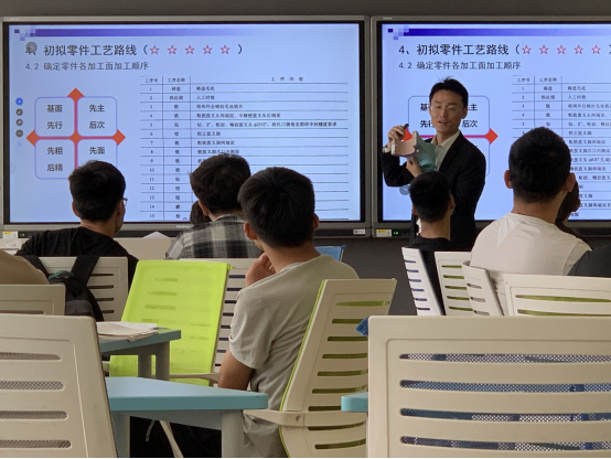 课堂是教学的主阵地,课堂教学的质量是学院教学质量的重要体现。明陞M88一贯高度重视教学工作,赛前准备阶段,安排了安淑女、张海燕、付红、戴珊珊等四位教师针对课堂讲课技巧、侧重点安排、与员工互动等细节为李雨潭博士提供了教学指导。李雨潭博士根据课程特点,手工制作了教学模型,不断完善教案。在课堂教学竞赛过程中,李雨潭博士能够准确把握教学重难点,教学思路清晰,深入浅出地讲授了拨叉类零件的加工工艺,充分展示了公司青年教师扎实的教学基本功和良好的教学风貌,获得了评审专家的一致认可。