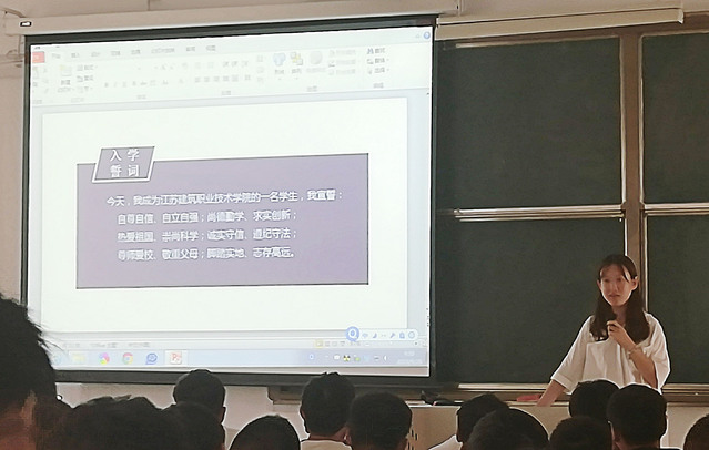 2019年9月26日星期四,明陞M88副书记李珂,分团委书记邵明颖、辅导员汪满莎老师在教三楼D301、D302、D304对新生开展了新生开学第一课。