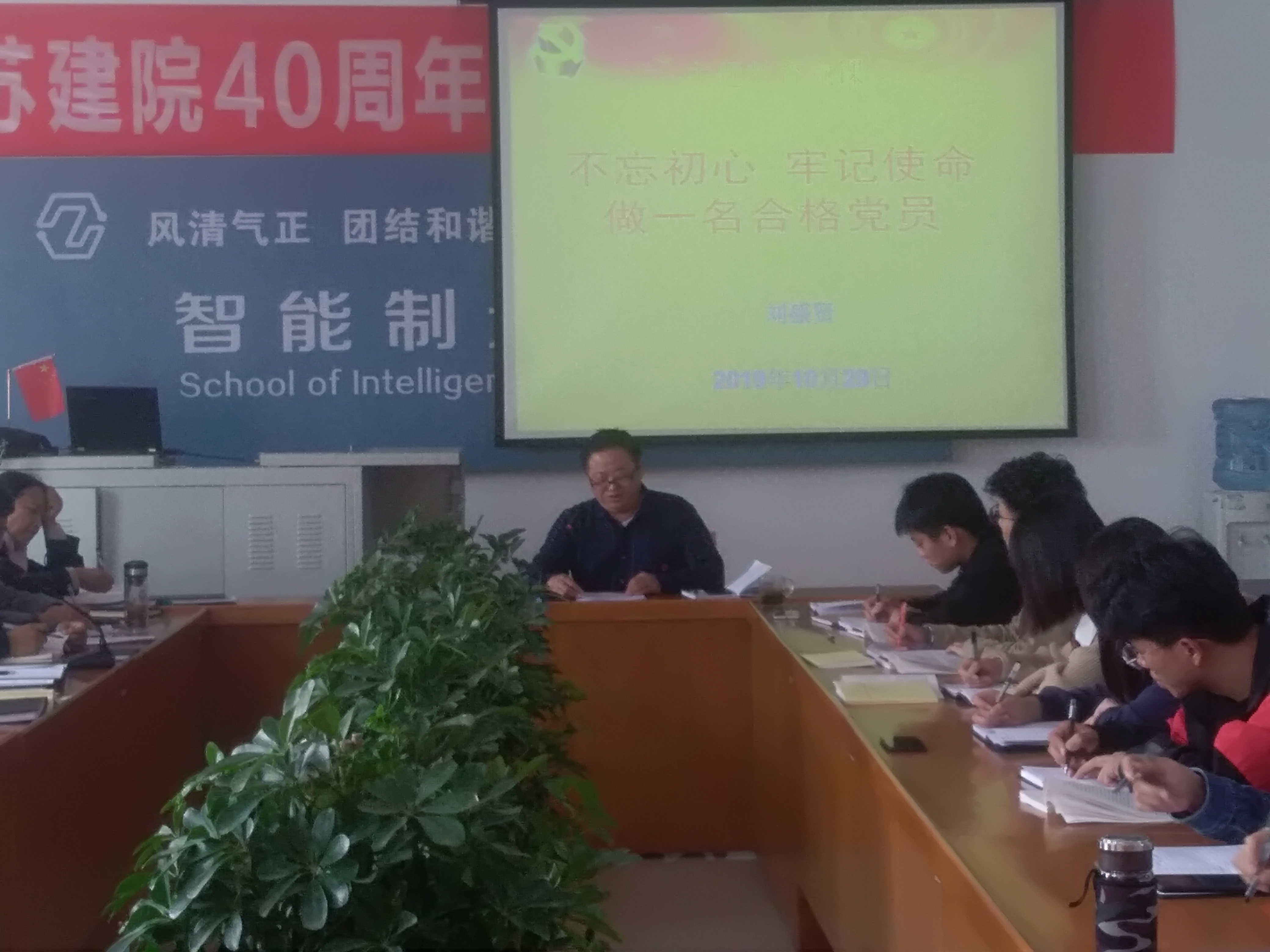 20191029下午,明陞M88全体师生党员在第一实训楼504集体参加“不忘初心、牢记使命”主题教育党课学习。本次党课的主题是《“不忘初心、牢记使命”,做合格党员》,由公司党总支书记刘盛贤同志主讲。