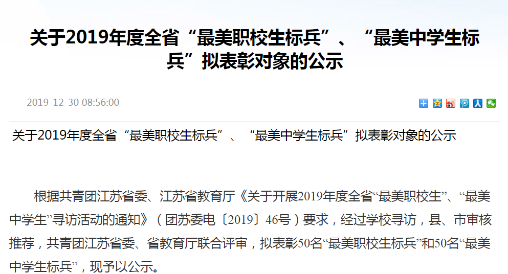 热烈祝贺公司机电17-4陈宇同学获得江苏省“最美职校生”荣誉称号!