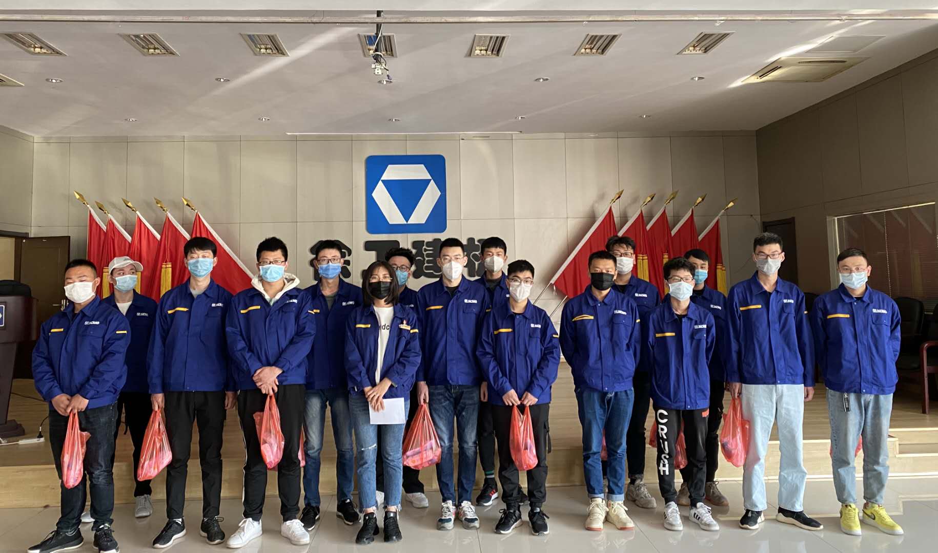 刘洋等16名毕业生在徐工机械建设机械分公司进行顶岗实习,由于疫情原因,实习生无法返回学校居住,徐工建机的领导非常重视,组织专人在公司附近为员工们租赁两套房子,配备必须的生活用品,解决了员工们的燃眉之急。实习生返岗当天,单位认真组织安全防疫培训,详细讲解病毒的传播过程及如何有效防疫的安全知识,为实习生们发放消毒酒精、免洗手液、一次性医用口罩、消毒湿巾等卫生防疫物品,后续每天都会发放医用口罩,为实习生迅速投入到复工复产工作提供了安全保障。