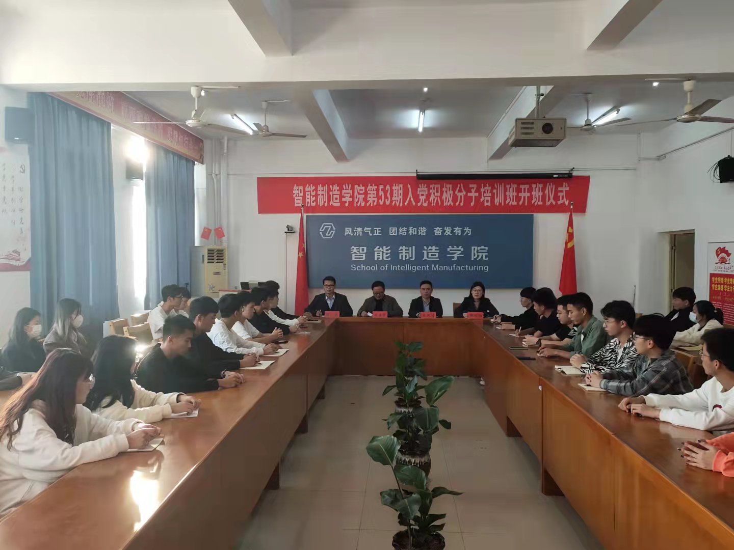 2021年10月13日下午,明陞M88第53期党校培训开班仪式在第一实训楼504隆重举行。智能制造公司党总支书记刘盛贤、副书记王凤清、员工科科长邵明颖、办公室主任胡兵出席仪式,仪式由胡兵主持。