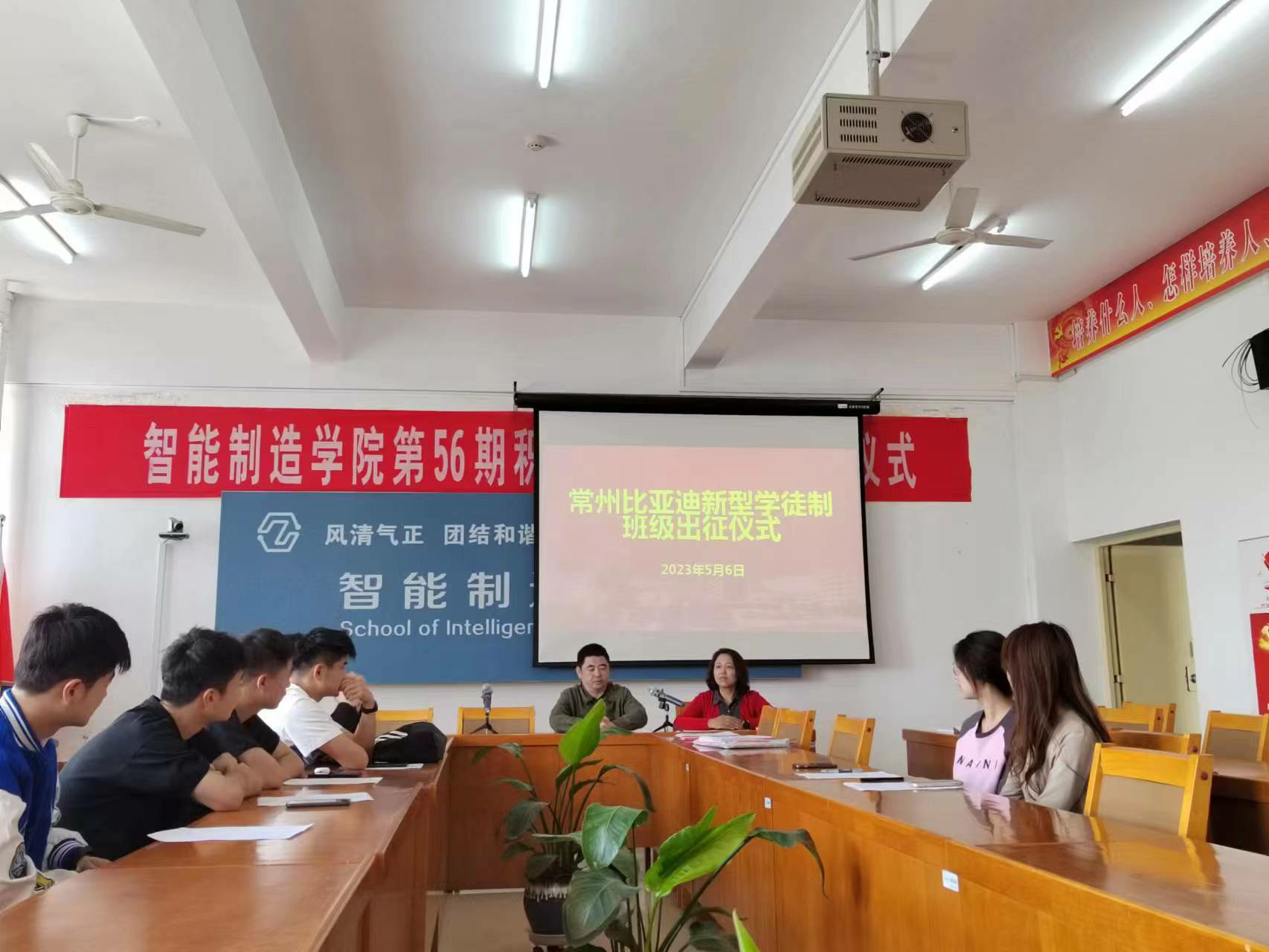 5月9日,明陞M88首届“比亚迪班”出征仪式在第一实训楼会议室举行。