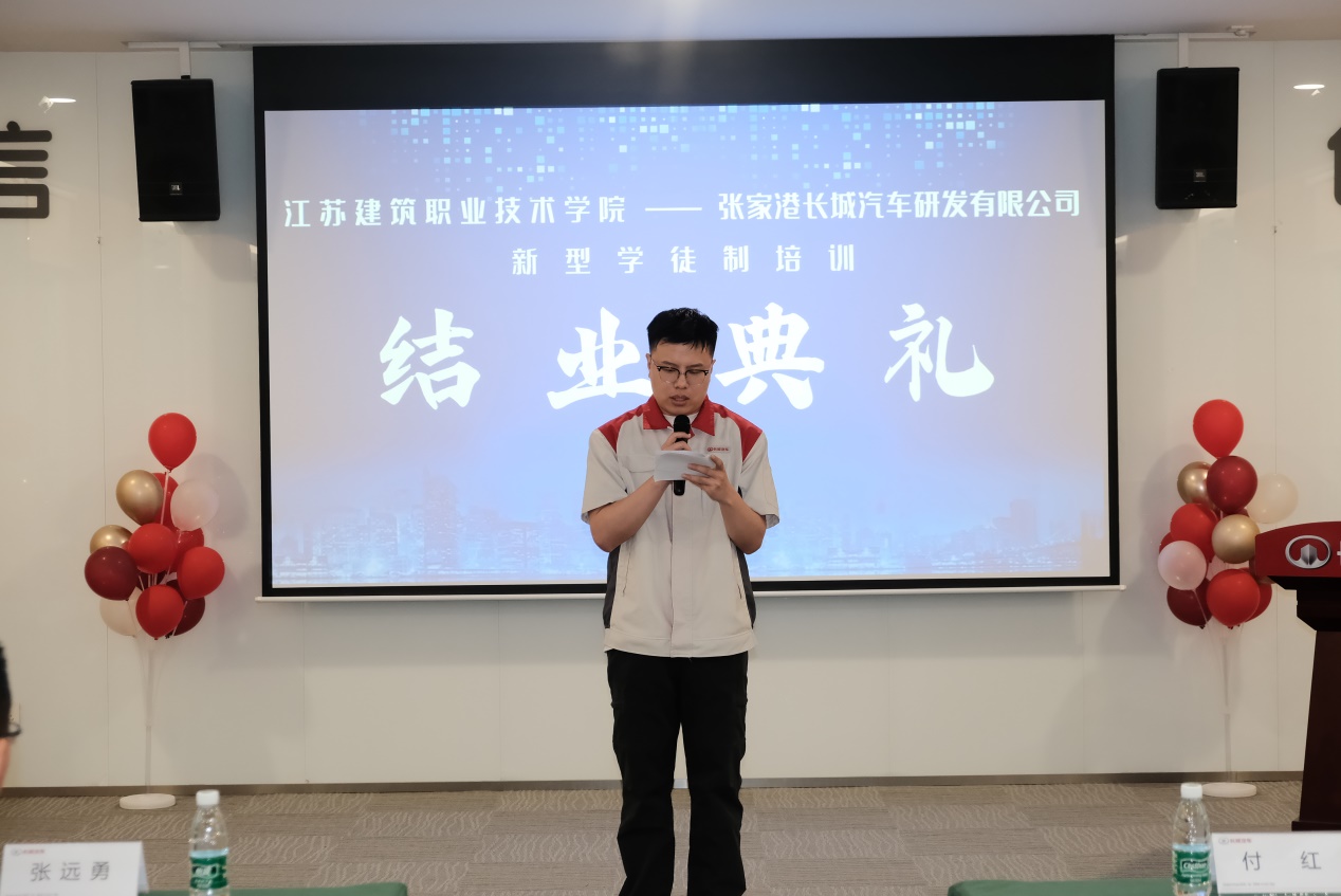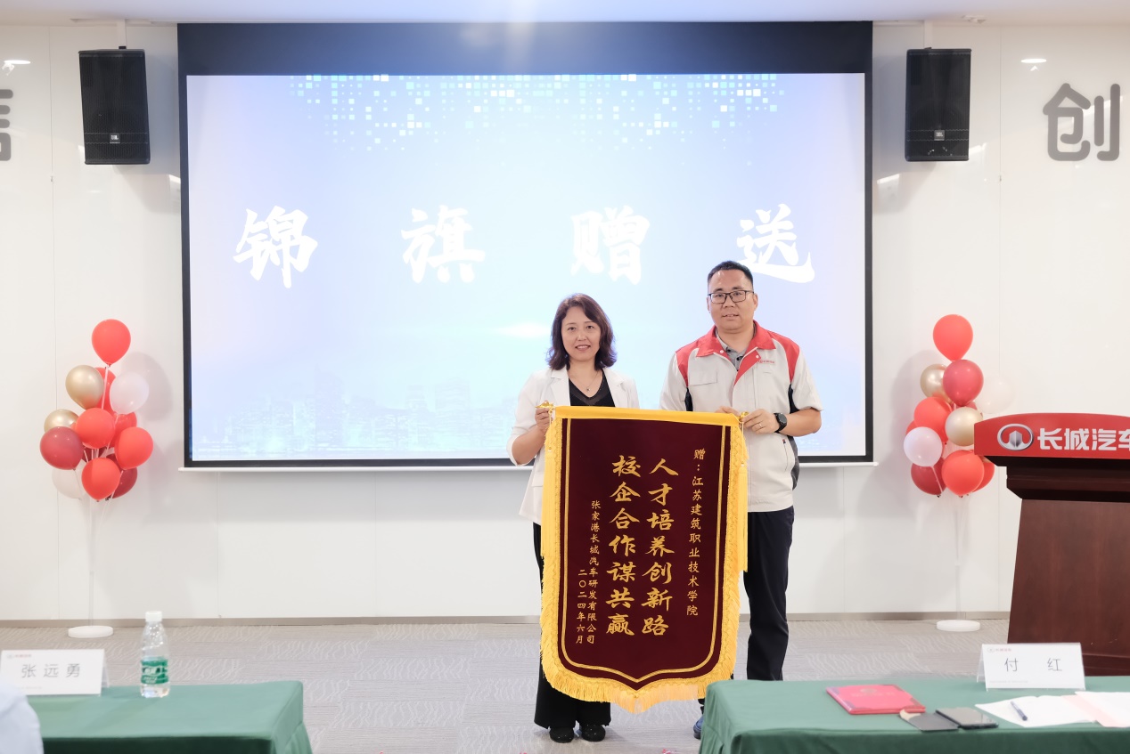 张家港长城汽车研发有限公司综合管理部部长李保华做了结业班培训情况总结,统括部部长董彦龙为公司颁发了锦旗,鹿鹏程、张端军两位老师被评委培训优秀教师。