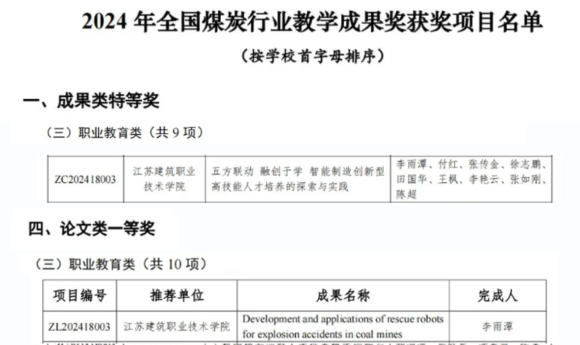 日前,中国煤炭教育协会公布了2024年度全国煤炭行业教学成果奖,我院成果“五方联动 融创于学 智能制造创新型高技能人才培养的探索与实践”获成果类特等奖。同时,李雨潭老师的论文荣获论文类一等奖。