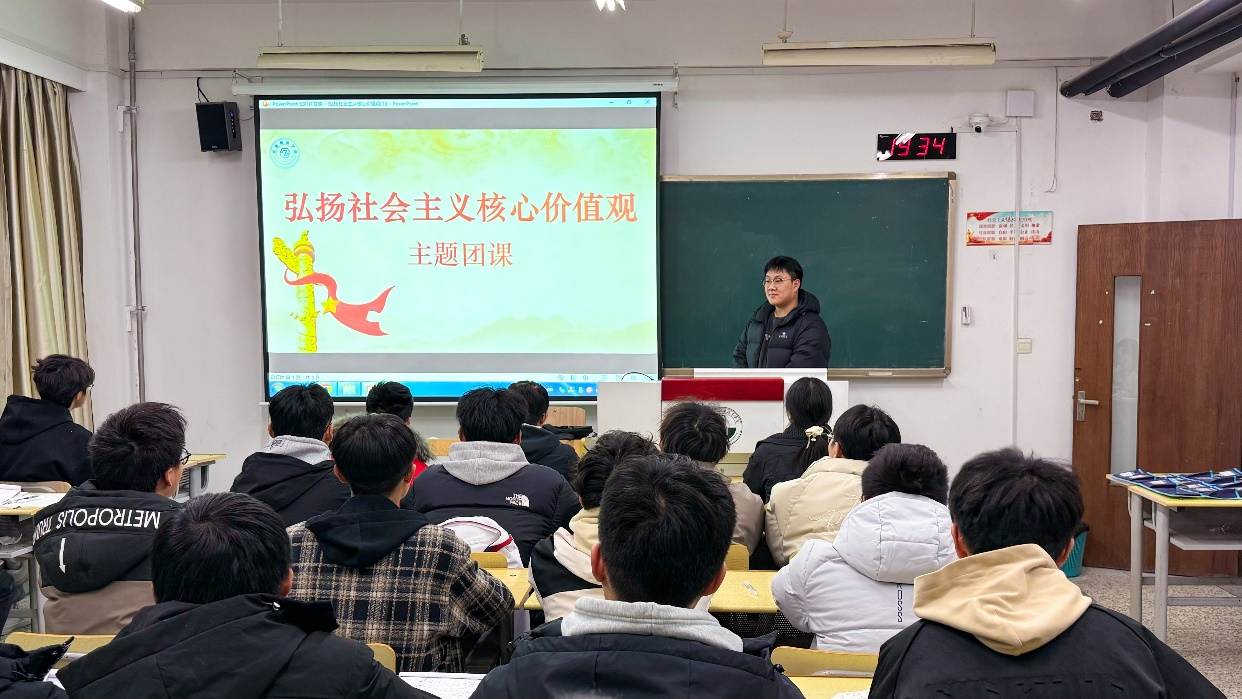 2024年11月28日,明陞M88团委机械化团总支周生宣登上讲台,为新生团支书讲授题为《弘扬社会主义核心价值观》的主题团课。此次团课的目的是引导新生团支书深入领会社会主义核心价值观的丰富内涵,进一步提升他们践行社会主义核心价值观的自觉性和坚定性。