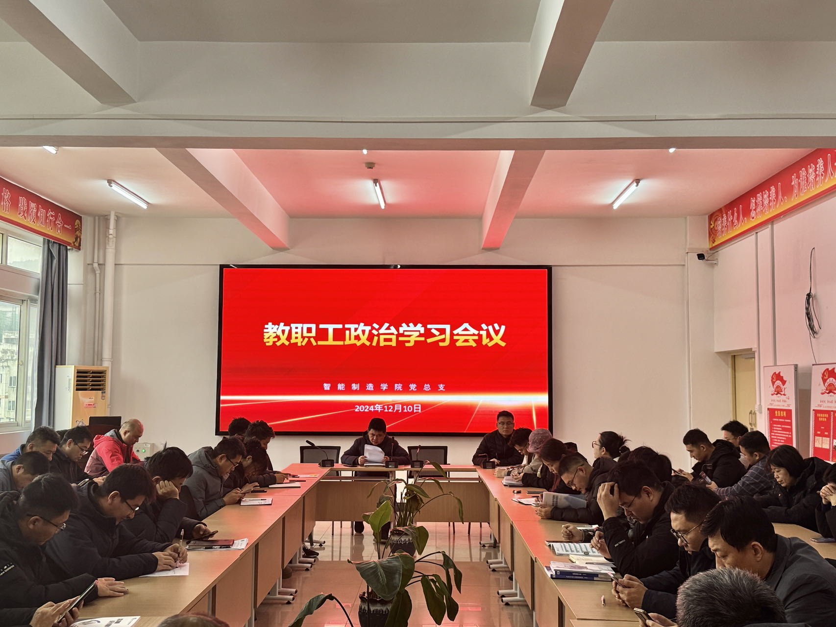 12 月 10 日下午,公司召开教职工政治理论学习会议,由党总支书记王正扬主持,全体教职工参加。