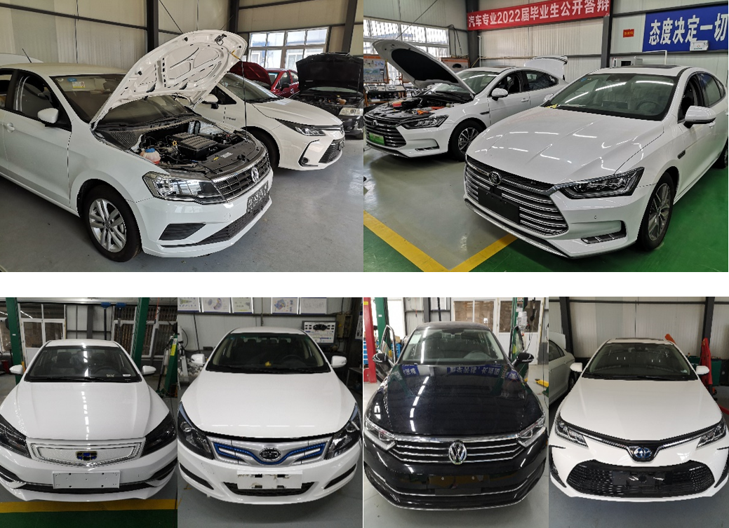 本专业校内建有汽车实训中心,实训车辆有电动汽车2辆、混合动力汽车3辆、燃油汽车4辆,涵盖新能源与传统燃油汽车。另有新能源车辆检测台架与“发动机、底盘、电器、车身”四大模块实训设施台架,共包含纯电动汽车检测台架、汽车发动机拆装实训台架、汽车发动机检测台架、汽车底盘拆装调整实训台架、汽车电器系统实训台架、汽车空调系统检修实训台架等各类实训台架十余套。
