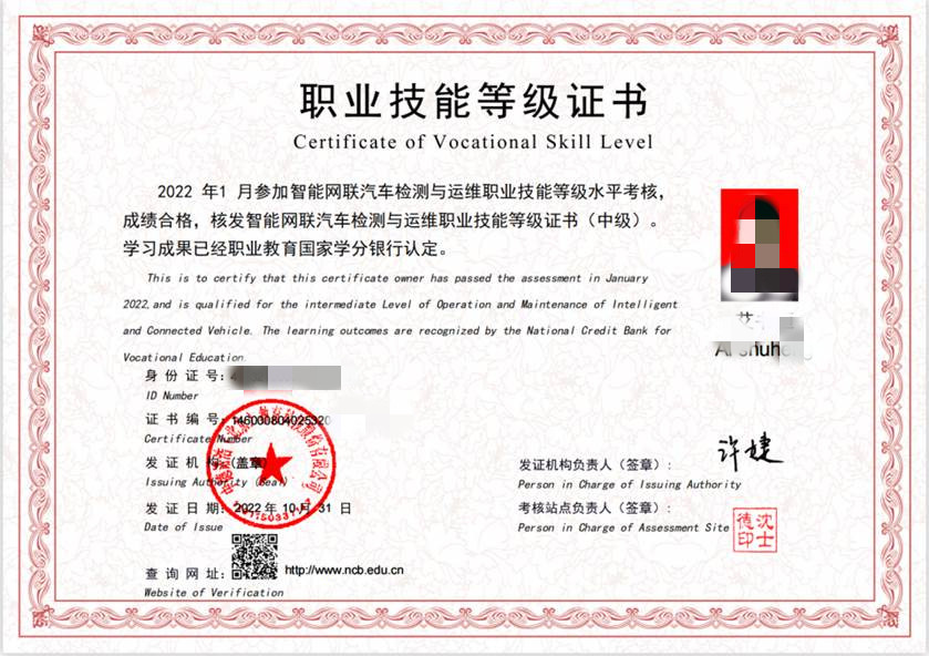 (2)智能网联汽车检测与运维职业技能等级证书;